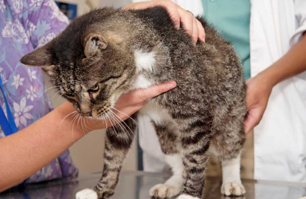 При миозите участок пораженной мышцы увеличивается в размерах, на ощупь мышца кажется более горячей чем участки рядом, возникают отеки, область более плотная, конечность с поражением миозитом ослаблена потому кошка хромает или волочит ее. Прокосновения к пораженному участку причиняют ей боль.