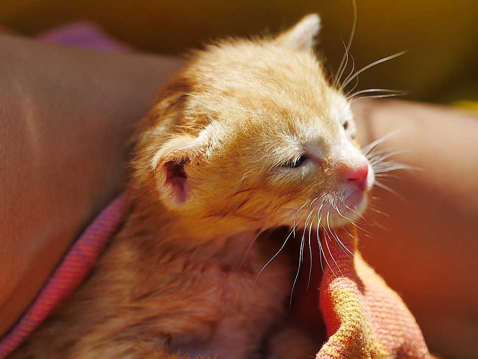 Во время каждого кормления необходимо тщательно осматривать котят. Возьмите чуть смоченную теплой водой жесткую ткань, для этого подойдет льняная и аккуратно оботрите котенка – ушки, головку, спинку, бока и лапки. Это имитирует процесс умывания кошкой.