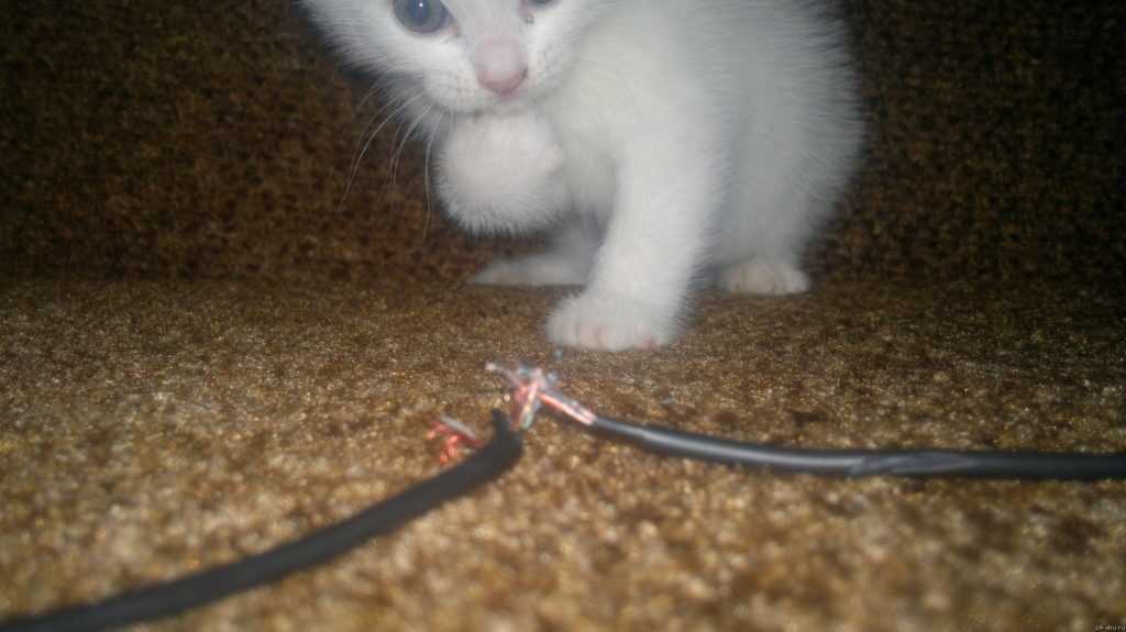 Котов, в особенности — котят, желательно не оставлять наедине с розетками и проводами