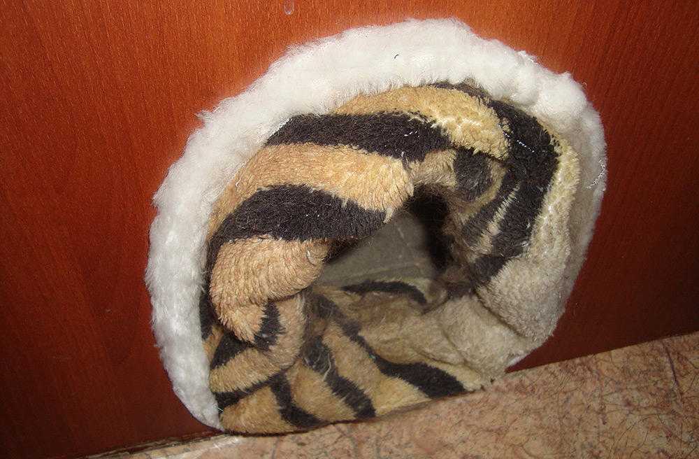 Если вы переживаете, что кошка может получить травмы, проём можно обработать гладкой, мягкой и приятной на ощупь тканью, желательно с наличием ворса. В момент скольжения в отверстии такая «обивка» позволит собрать с животного линяющую шерсть.