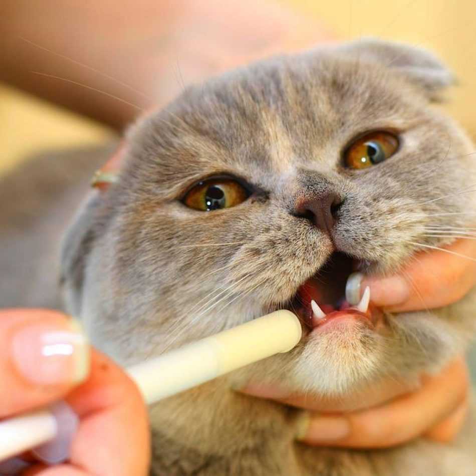 Особенно важно это для котят. Снимают иголку и впрыскивают суспензию за щёку кошке, не забывая проверить — не выплюнул ли питомец принятое содержимое