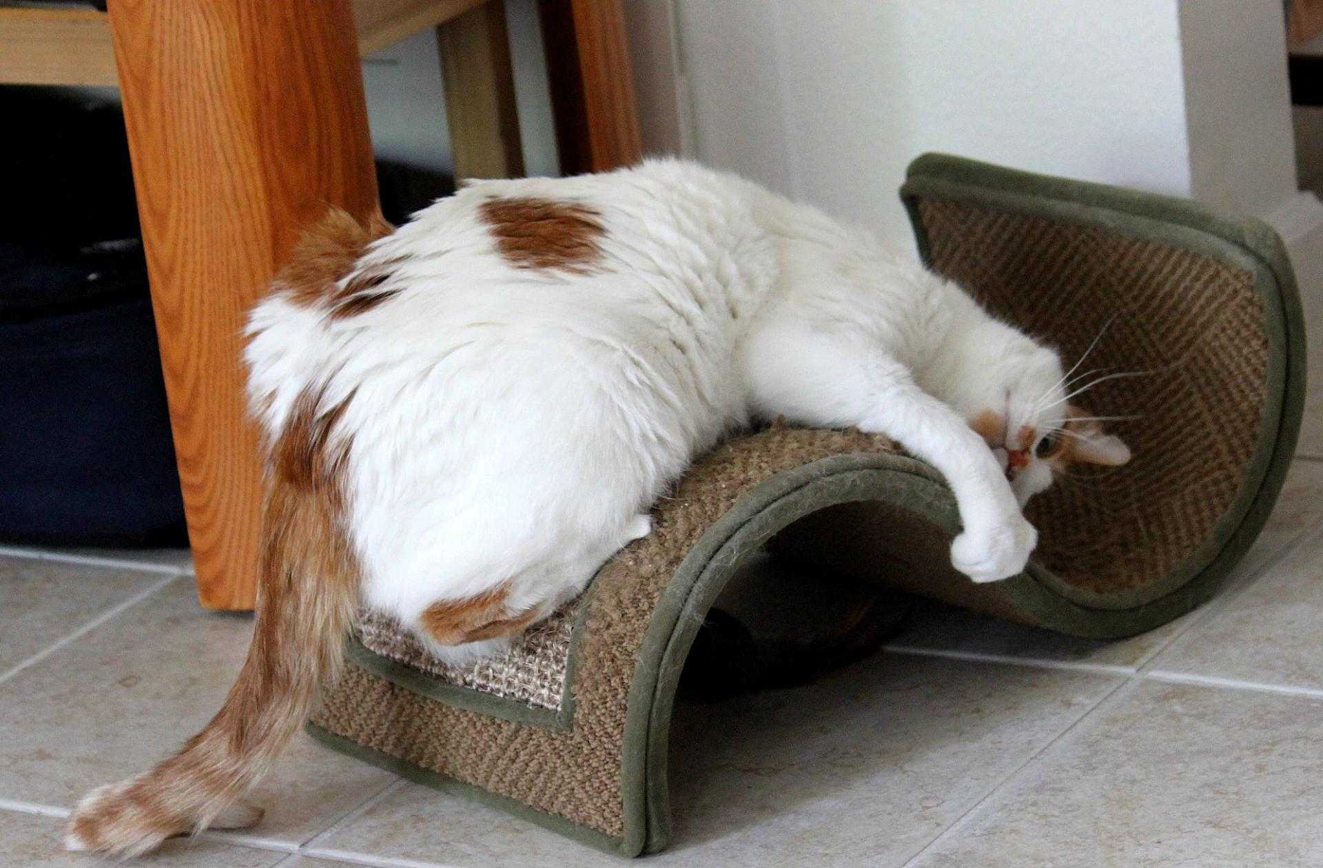 - когтеточка обязана выдержать вес питомца, для чего ее надежно фиксируют;