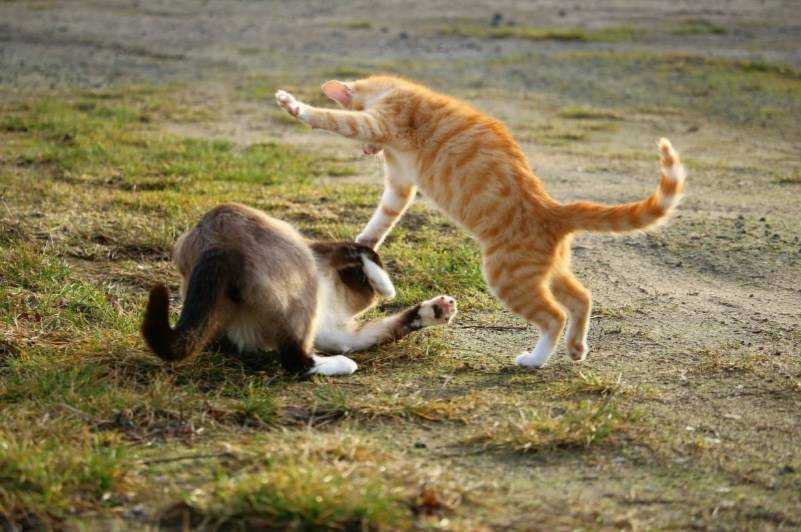 Бывают случаи, когда возня между питомцами переходит в борьбу. Например, у одной из кошек нет желания играть или такой стиль ей не понравился. Частая причина у молодых особей, когда животные проявляют агрессивность — недостаточный расход энергии. Тогда кошка надоедает и достает сородича, навлекая на себя агрессивное поведение. Кошкам нужно двигаться. Поэтому интенсивные игры каждый день им только на пользу. Отличная идея поставить кормушку-головоломку, из которой еду нужно добывать.