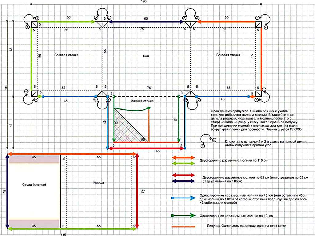 При этом для отделки внутри собачьего дома выбирают более плотный материал, чем для обшивки снаружи, чтобы он служил долго. Если элементы соединяются застежками-молниями, то их выбирают по длине сторон. Они могут быть цельными или отдельными. Такие замки упростят уборку внутри и чистку деталей домика для шпица.