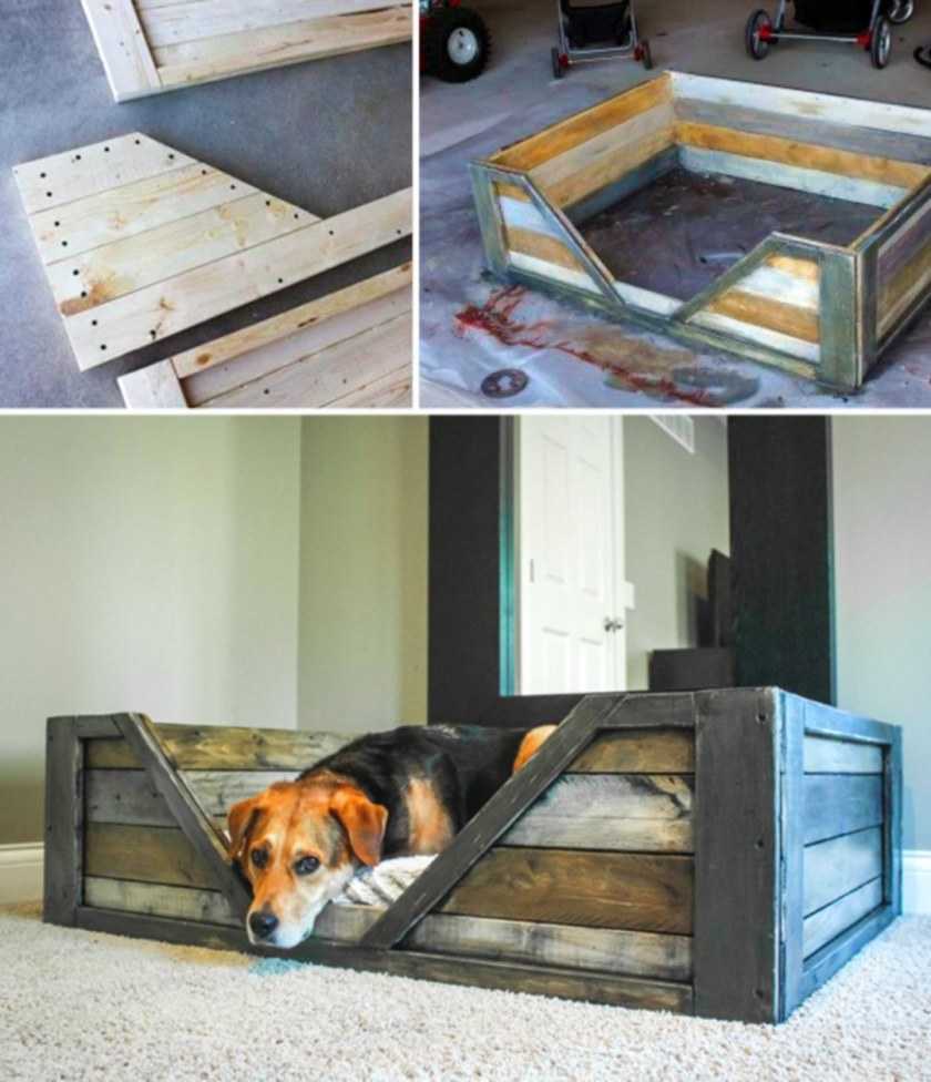 Деревянный каркас лежанки лучше выбирать в виде своеобразного поддона с невысокими (до 5 см) бортами. Такое решение придётся по душе и крупным псам, и мелким животным, разнообразие дизайнерских решений сегодня достаточно велико. Из дерева даже создают миниатюрные копии настоящих кроватей, как у хозяина, делают оригинальные диваны со съёмной мягкой обивкой.