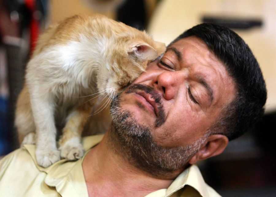 - вылизывание рук и подбородка владельца или же «кошачьи поцелуи»;