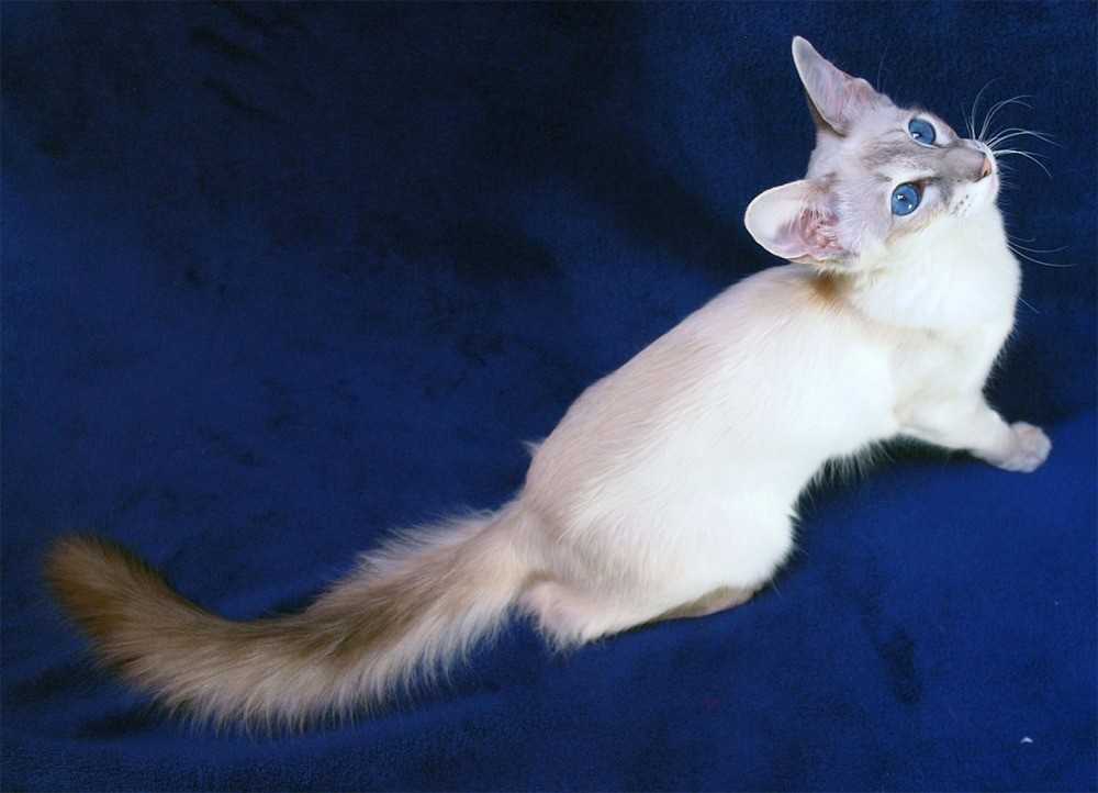 - Яванская порода выведена искусственным путем. У яванеза тонкая шелковистая шерсть без подшерстка. За счет этих качеств его относят к категории гипоаллергенных кошек.