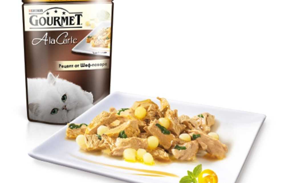 Линейка кормов Гурме включает в себя Gourmet Gold, Perle, Mon Petit, A la Carte. Производится он только для здоровых взрослых кошек.
