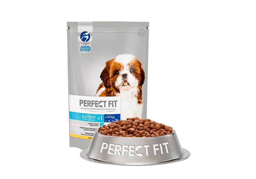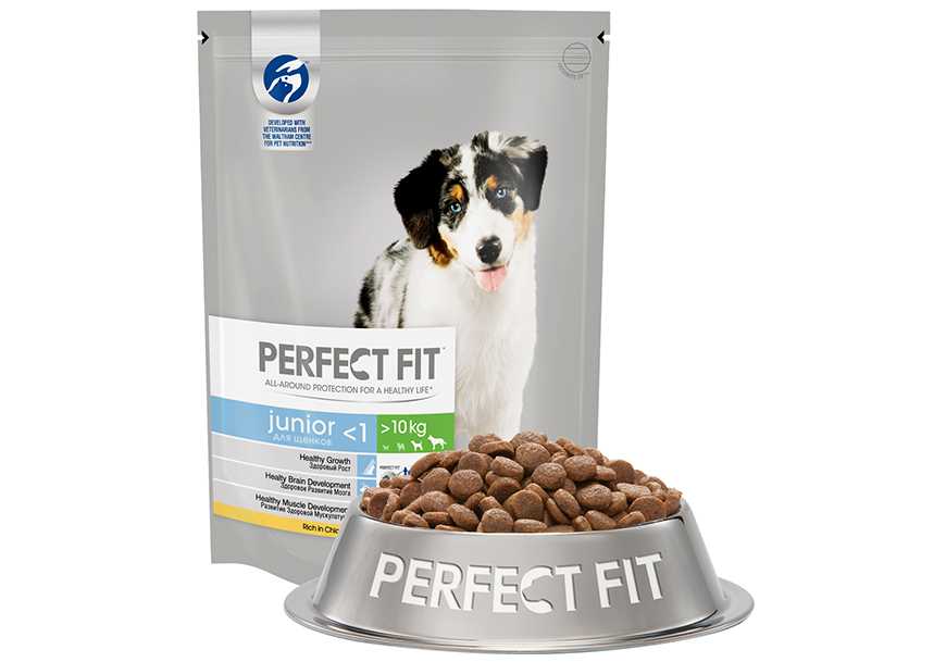 Perfect Fit Junior – еда для малышей постарше, калорийная и сытная по сравнению с другими кормами. На 100 г корма приходится 18 г жира и 41 г белка. Perfect Fit Junior содержит: