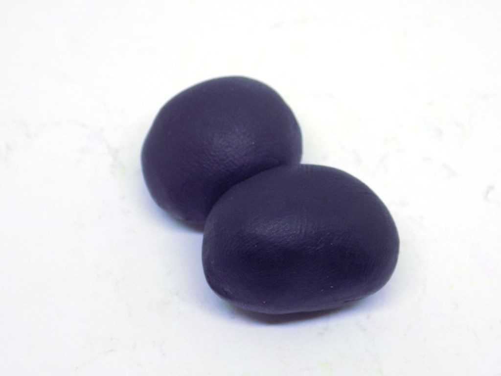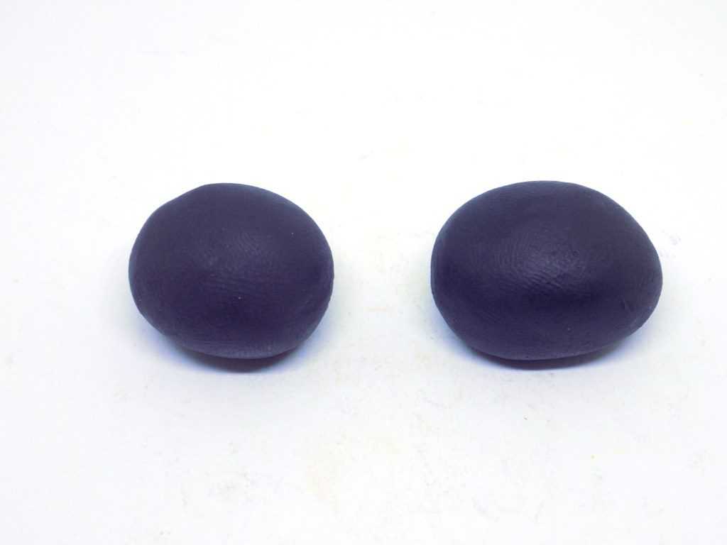- Скатайте из черного пластилина овал. Слегка сомните его, чтобы получилась продолговатая форма.
