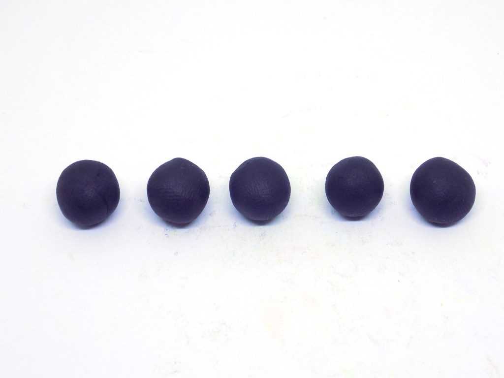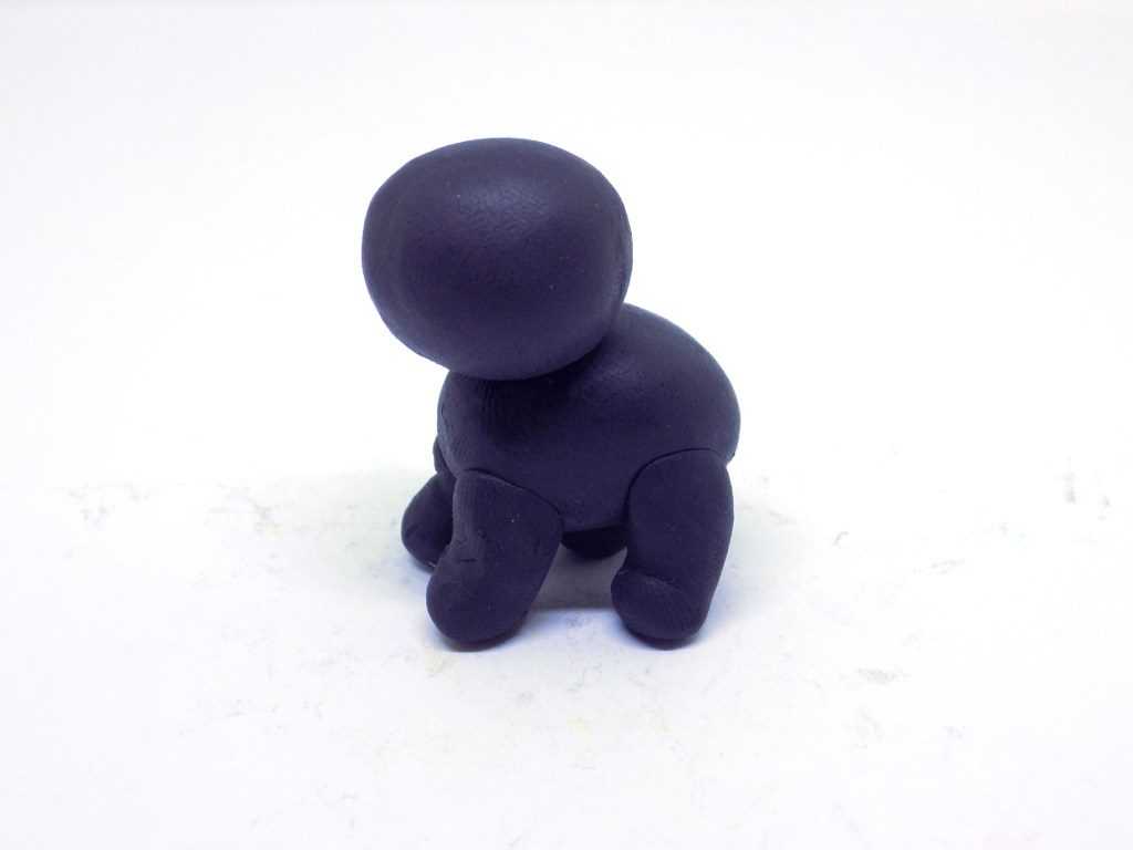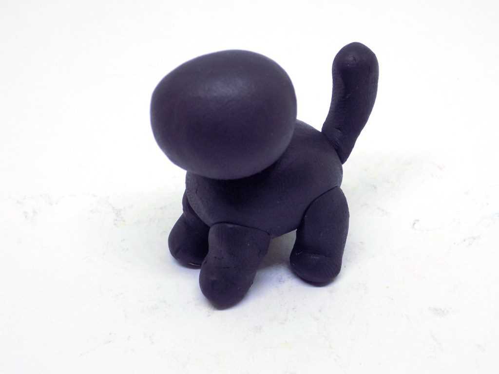 Теперь для лапок и хвостика готовим 5 небольших шариков, их также делаем из черного пластилина.