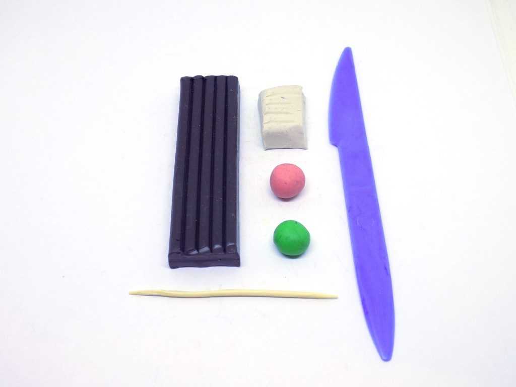 - пластилин (любой цвет на свой выбор, плюс зеленый, черный, красный);