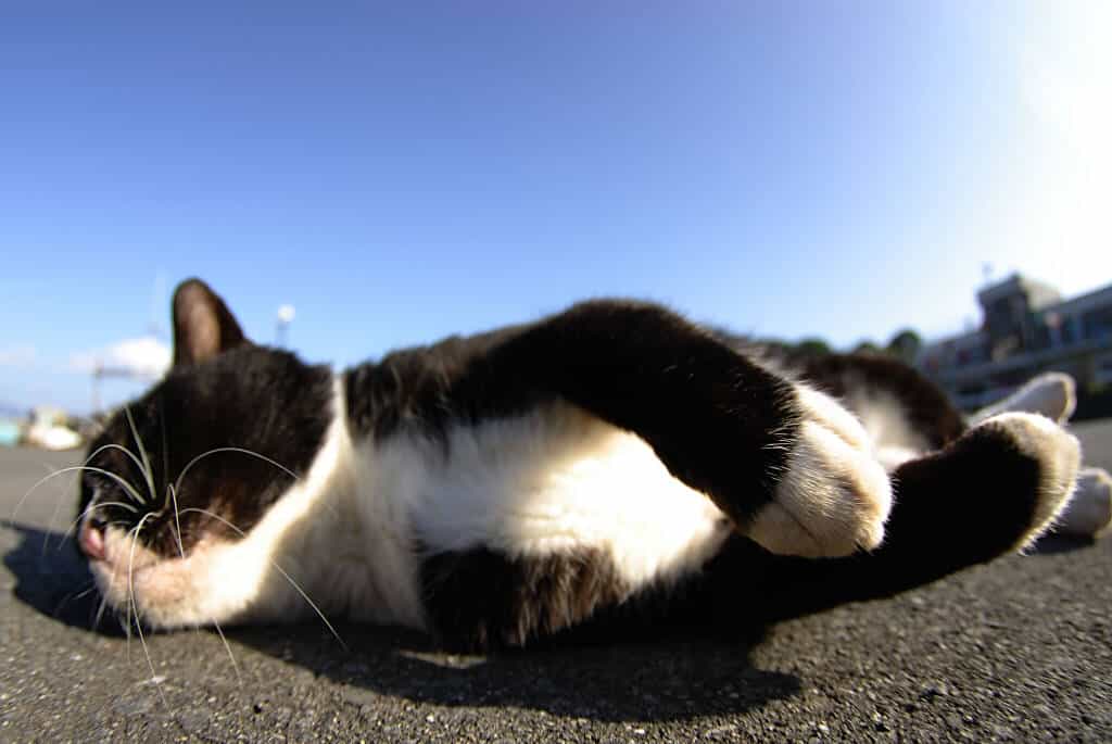 Если объект не представляет угрозы – животное остается на месте, но в случае резкого движения или окрика, кошка мгновенно переворачивается, пряча нежный животик и готовясь бежать или драться. Никогда не следует поддаваться эмоциям, пытаясь почесать животик незнакомой спящей кошке: в этом случае нарушителя спокойствия ждет жесткий удар лапой с выпущенными когтями.