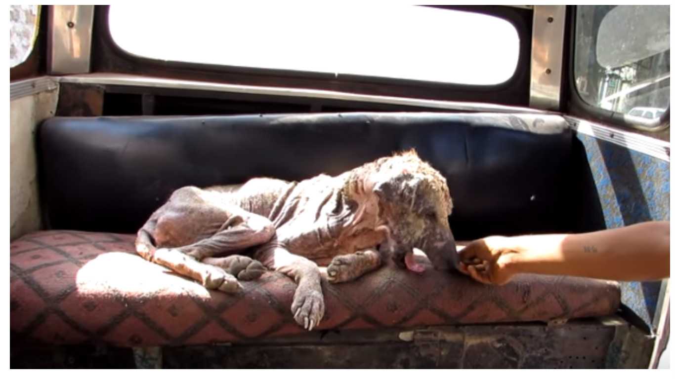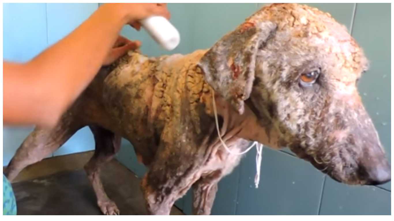 Ветеринары аккуратно обработали все ранки собаки лечебным бальзамом, который убил паразитов на коже животного и смягчил зуд.