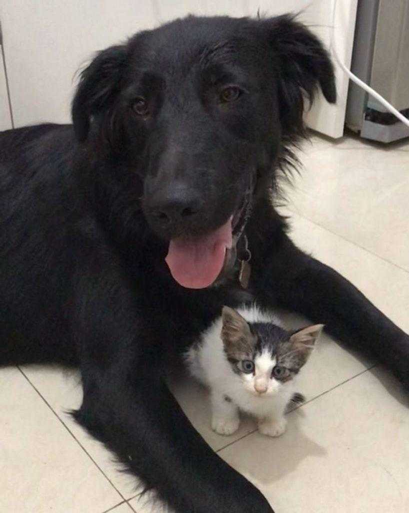 После этого забавного эпизода котишка все время старался выбраться из своего уголка, поэтому девушка решила, что стоит дать ему свободу. Малыш был счастлив и в первый же день направился к Комете, чтобы подружиться с ним. Он стал тереться мордочкой о шерсть питомца и свернулся клубочком, прижимаясь к его лапам. Довольное мурлыканье раздавалось на весь дом!