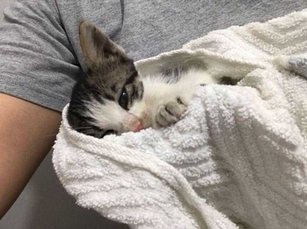 Уже дома девушка обнаружила, что у малыша, которого назвали Феникс, какие-то раны и царапины на животике. Кроме того, у котенка были воспалены глазки. Судя по всему, жизнь крохи на улице была суровой, и ему требовался не только уход, но и медицинская помощь.