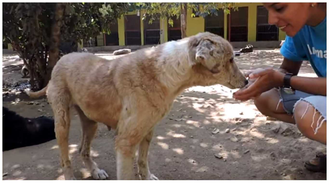Когда волонтеры нашли беднягу, она была совсем слабой – сказывалось недоедание и жажда. Даже видавшие виды сотрудники приюта ужаснулись от состояния кожи Элис и худобы животного. Они предложили ей немного еды, на что собака отреагировало вяло – каждое движение давалось ей с трудом. Но через пару минут она все-таки взяла угощение.