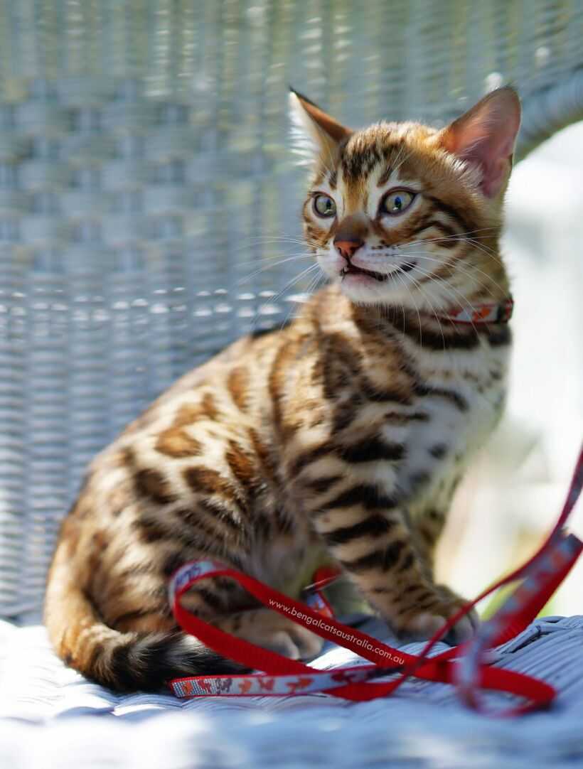 Голова средних размеров, мордочка, слегка напоминающее перевернутое сердечко, небольшие глаза желтовато-зеленого цвета, миниатюрные ушки, заканчивающиеся закругленным кончиком, длинный хвост с тупым окончанием – вот основные черты домашнего тигренка. При этом коты выглядят гораздо симпатичнее своих спутниц благодаря более развитой мускулатуре.