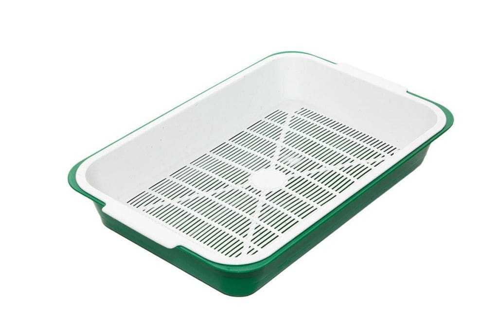 - Наличие крепкой и прочной сетки, ставящейся на поддон (котенок встает на нее и справляет нужду, влага стекает через дырочки на дно лотка, а твердые каловые массы остаются на решетке — соблюдается чистота);