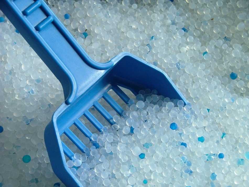 - Силикагелевый наполнитель – это силикатный гель в виде крупных кристаллов белого цвета, имеющих разные формы.