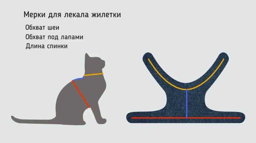 - Обхват шеи кошки. Потребуется оставить дополнительные 1-2 см на припуски.