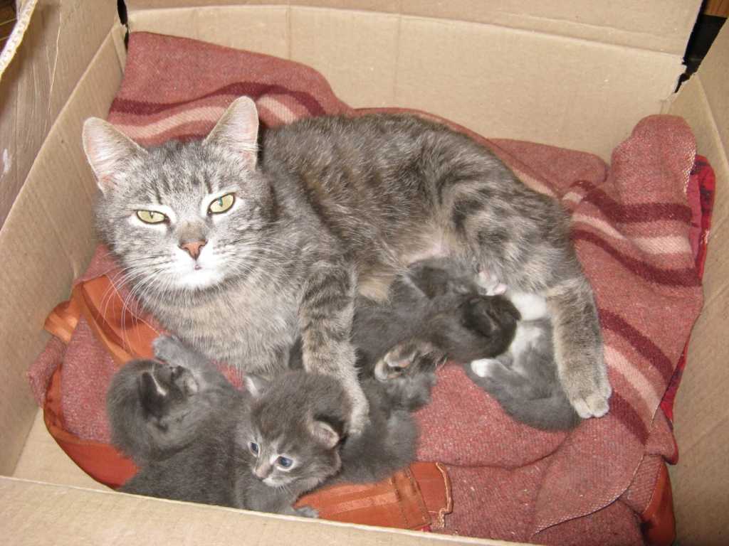 После окота кошку с котятами часто селят в коробке. Малыши чувствуют себя очень комфортно, плотно прижавшись друг к другу. Учеными доказано, что такие «объятия» провоцируют у животных выброс эндорфинов, ощущение защищенности и удовольствия.