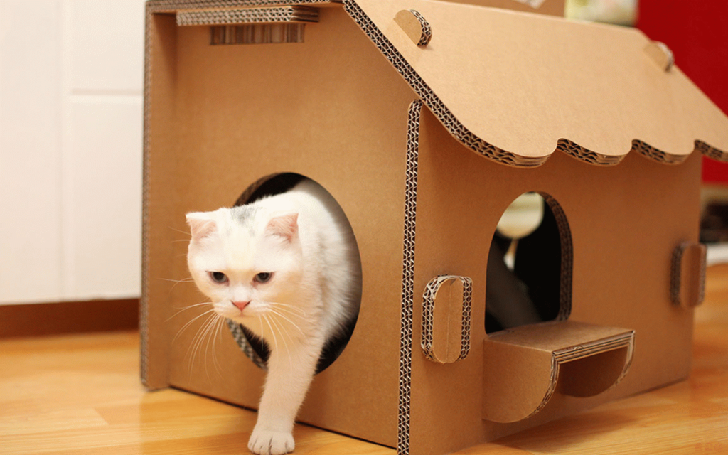 Если животное предпочитает проводить время в коробке, из нее можно сделать домик. Питомец стремится следовать своим инстинктам, а хозяин может потакать его желаниям. Такая конструкция обладает множеством плюсов: