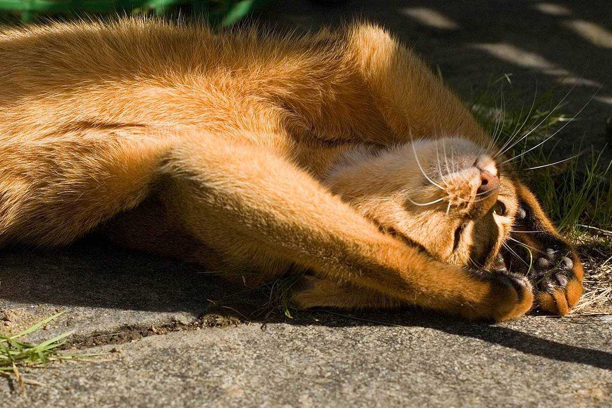 Кошка мало двигается, старается держаться в тени – все это помогает замедлить метаболизм и прекратить расщепление углеводов.
