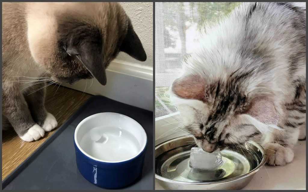 Хороший эффект может дать кубик льда, положенный в миску с водой. Игривые котики начинают трогать и гонять загадочный предмет лапой, пытаются достать, вылизывают его. Плюс вода в миске не так быстро нагревается – актуально, если вы весь день на работе.