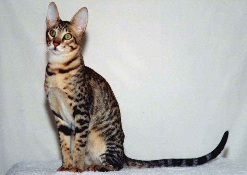 Это гибрид ориентальной и бенгальской пород кошек, выведенный искусственно. Обладают короткой шерстью, окрасом напоминающей гепарда. Характер активный, игривый, ласковый. Имеет худощавое, мускулистое строение тела, уши больше среднего, лапы удлиненные. Безусловно, это редкая порода кошек, которую сложно встретить.
