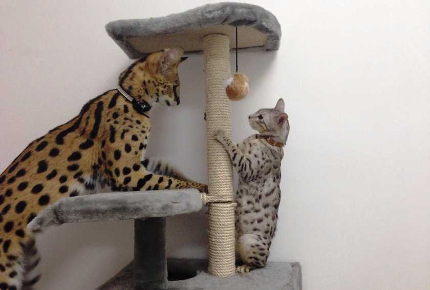 В помещении кошки предпочитают занимать места наверху, поэтому снимайте с антресолей все то, что жалко видеть разбитым. Не питайте иллюзий трехметровую планку кошка саванна покоряет не хуже, чем именитый атлет олимпиец.