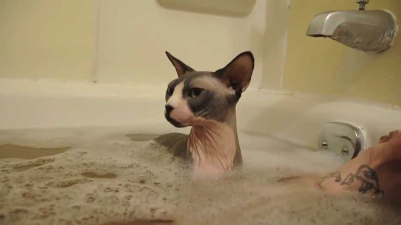 Чаще всего сфинксам нравится купаться и даже играть в ванной