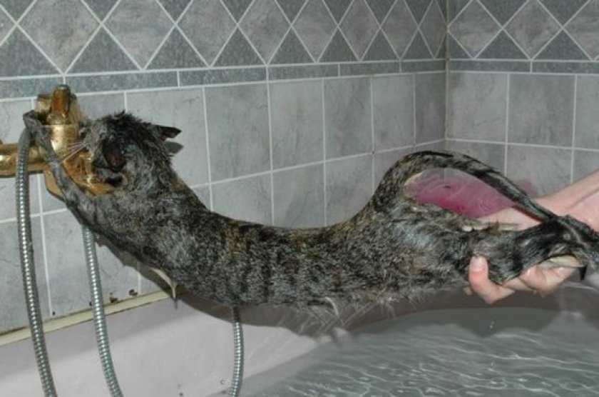 «Ледяной душ». Температура тела у кошки выше, чем у человека, поэтому и вода для купания должна быть теплее. Многие хозяева моют питомцев в воде, температура которой комфортна для человека, но не для кошки