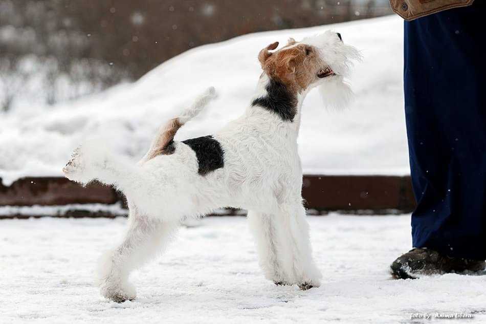 В то же время к посторонним людям жесткошерстный фокс не злобен. Характеристика породы предусматривает спокойную реакцию на прохожих, гостей, знакомых. Однако тискать мохнатого охотника нельзя – он бдителен, всегда готов защитить хозяина – резкие жесты, громкий разговор, возгласы собака может воспринять как угрозу.
