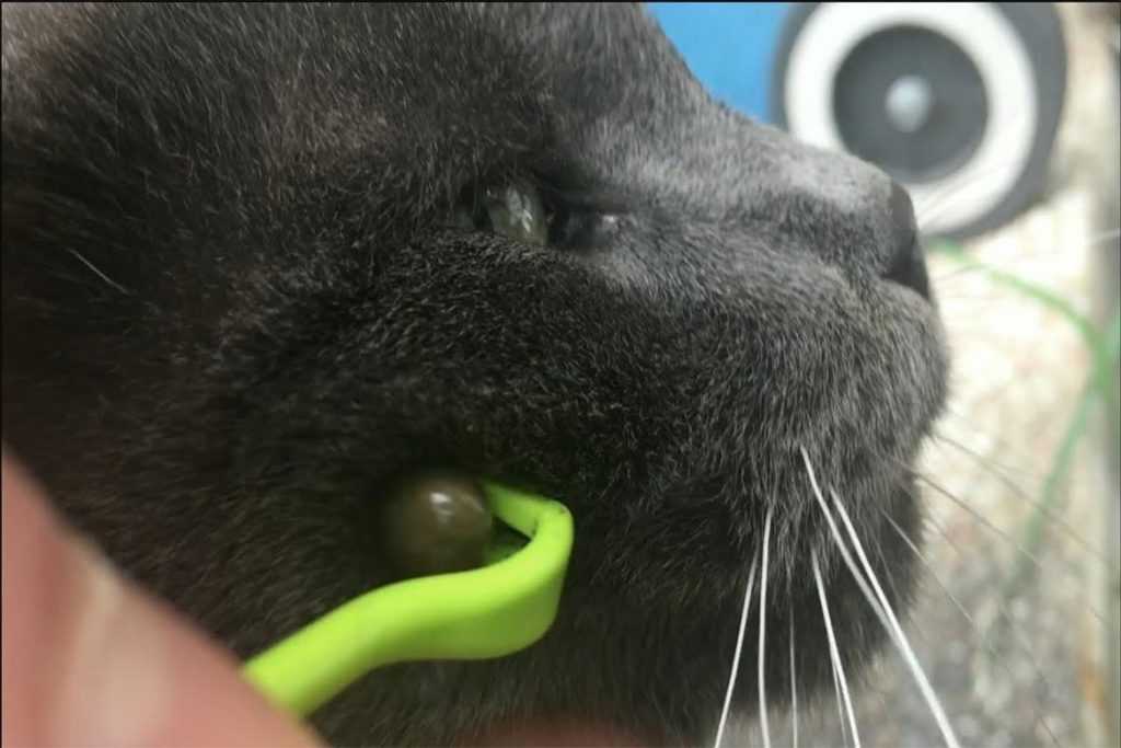 Извлечение присосавшегося клеща у кошки при помощи выкручивателя