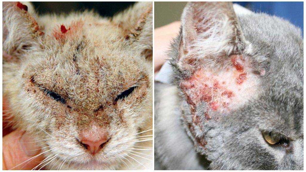 Существует и еще один вид клеща, также живущий под кожей у кошки — чесоточный. Заболевание носит название нотоэдроз, а его проявления схожи с демодекозом. Животных беспокоит зуд, шерсть выпадает.