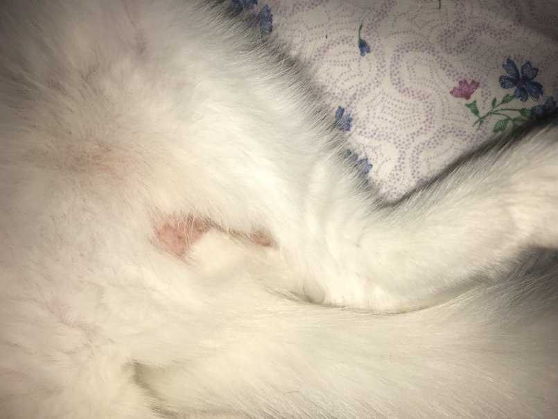 Дерматит у кота проявляется на начальной стадии в виде красного пятна на коже
