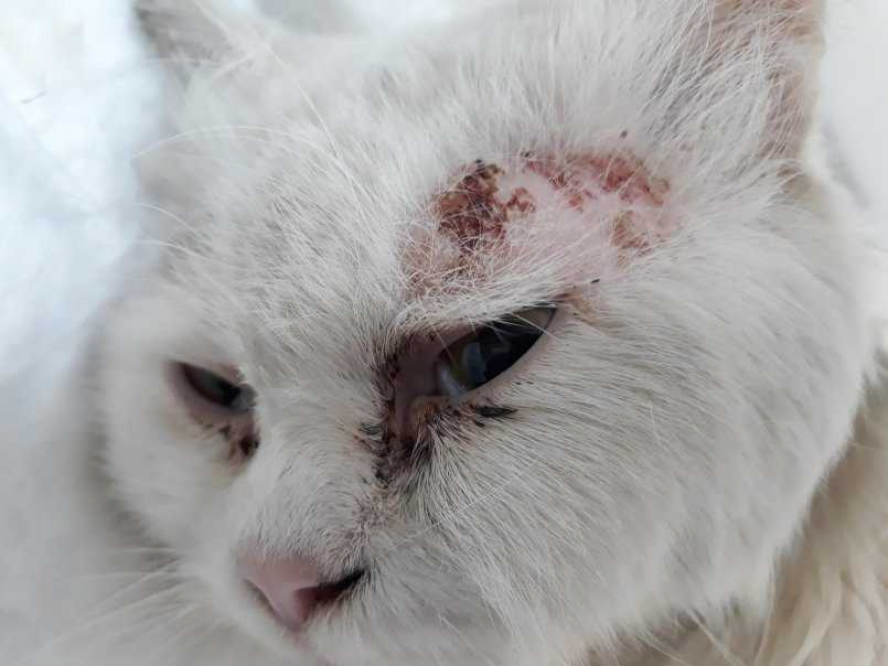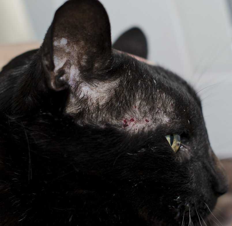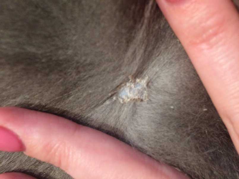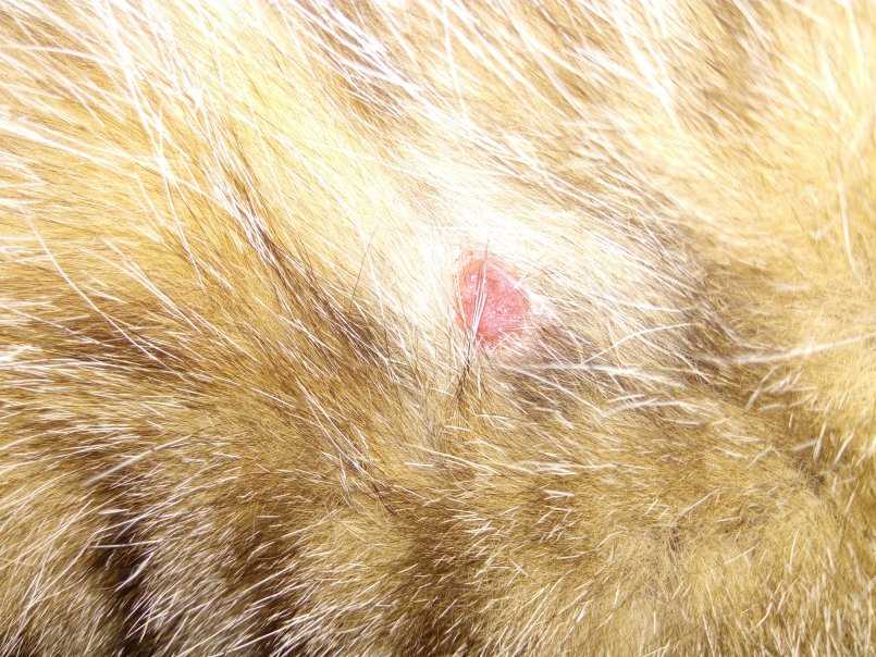 Если присмотреться на здоровой коже появляются папулы, покрытые кожей, струпьями, сухими и твердыми. Большого неудобства для животного это не представляет.