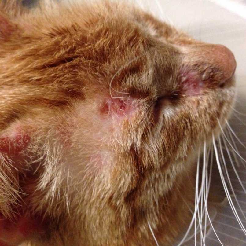 Пищевая аллергия также может проявится в виде кожного воспаления. Спровоцировать аллергическую реакцию может как новый, непривычный для кошки продукт, так и тот, с которым питомец уже знаком, в результате накопительного эффекта.