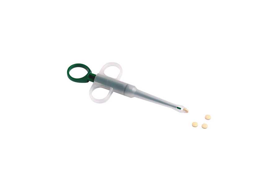 - дозатор разместите между губами четвероного друга, не стараясь разжать рот или просунуть инструмент поглубже;