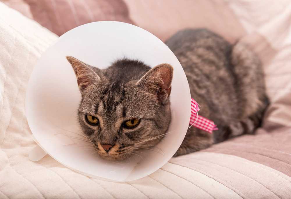 - Если кот пытается зализывать рану, воспользуйтесь елизаветинским воротником.