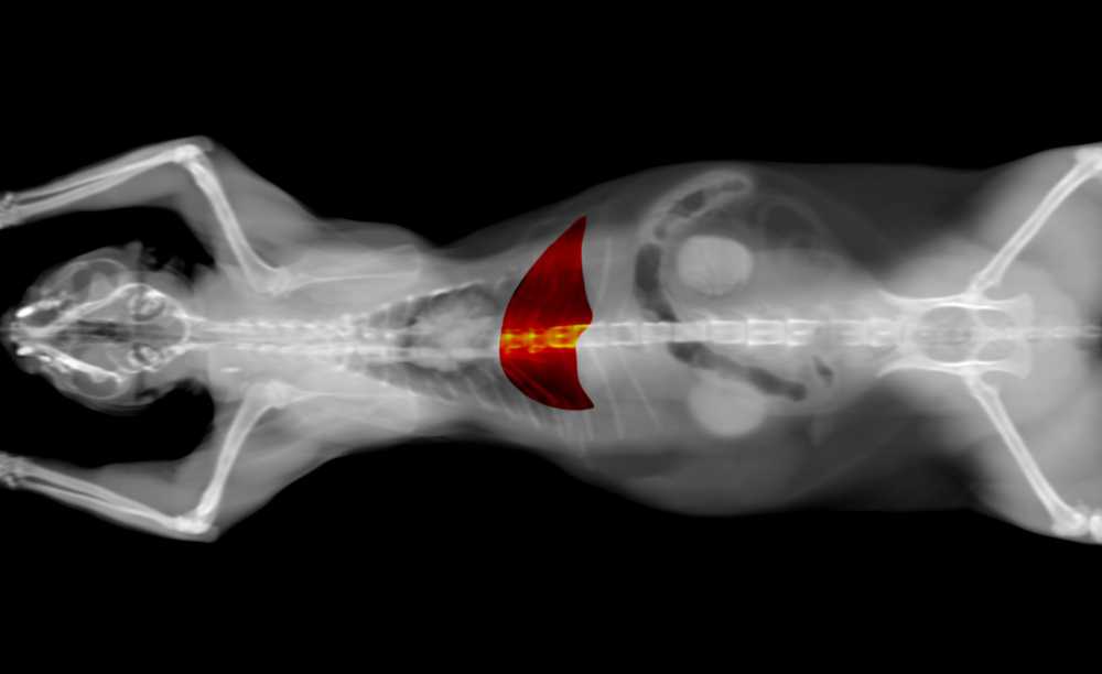 При использовании современной аппаратуры рентгенографическое исследование органов брюшной полости в латеральной и вентро-дорсальной проекциях позволяет визуализировать опухоли в 86% и 73% случаев, соответственно.