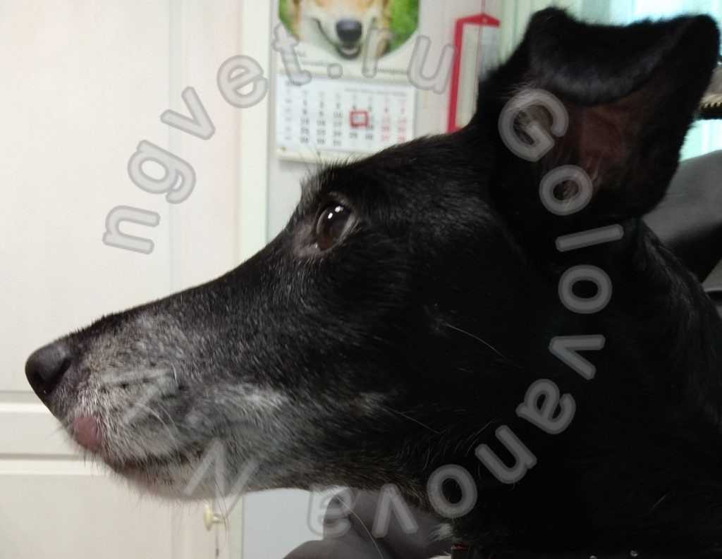 Одно из проявлений лишая у собак — керион. На данном фото — на верхней губе округлое безволосое пятно, возвышающееся над поверхностью кожи.
