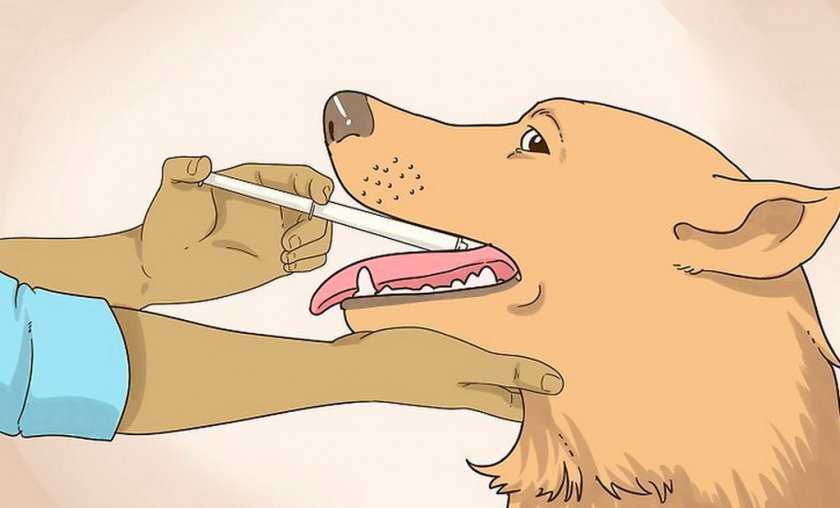 - постепенно вводят раствор, следя, чтобы собака успевала сглатывать.