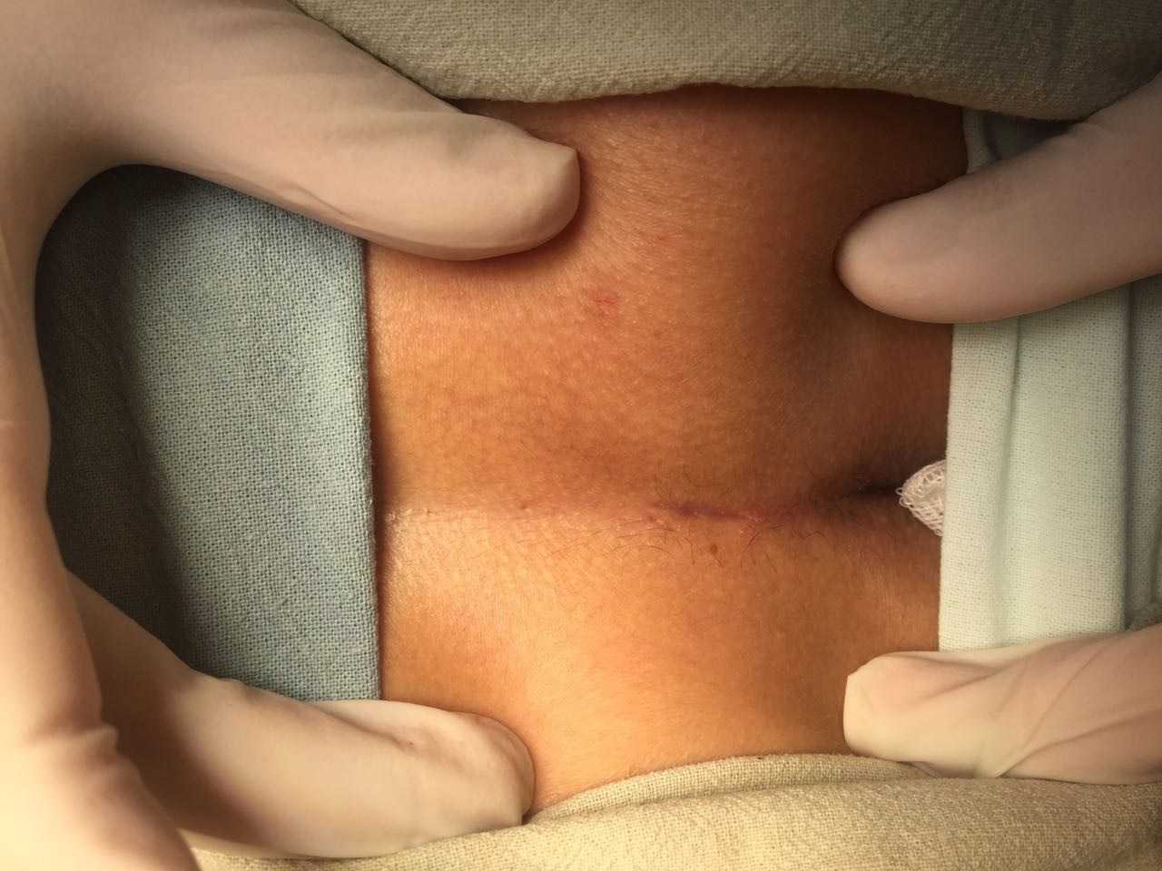 Важно! Даже такой простой этап, как вскрытие абсцесса ЭКХ, может значительно усложнить второе (основное) хирургическое вмешательство при несоблюдении простых правил. Разрез должен быть небольших размеров и располагаться как можно ближе к средней линии (межъягодичной складке)