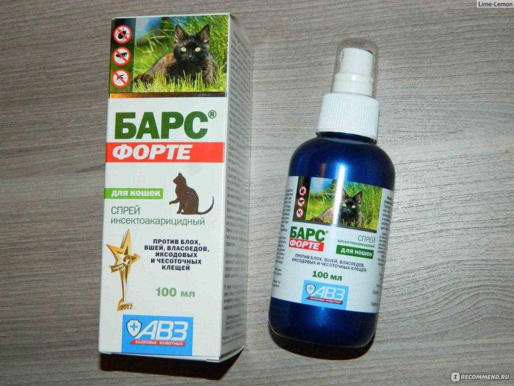 Спреи, самый популярный метод лечения паразитов. Они легки в применение. Распыляется спрей по всему телу животного, после чего нужно оставить питомца с ним. Следите, чтобы жидкость не попала на слизистые и питомец не вылизывал себя, это может грозить отравлением. После истечения времени, усатого друга стоит искупать.