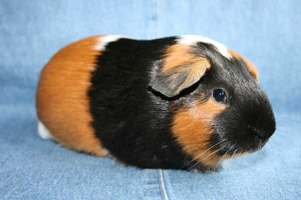Редкая и очень ценная среди заводчиков морская свинка, на теле которой определенным образом чередуются черные, рыжие и белые пятна.