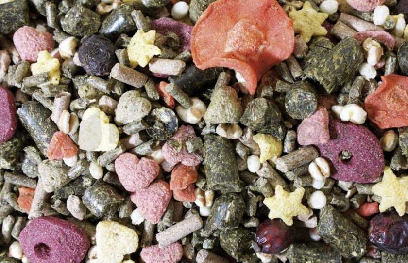 | Vitapol | В составе: злаковые, послеэкстракционная подсолнечная дерть, кормовые дрожжи, витаминно-минеральная смесь. | Улучшает общее состояние организма, шерстяного покрова, способствует нормальной работе пищеварительного тракта и стачиванию зубов. | Не все составляющие корма поедаются животными. |