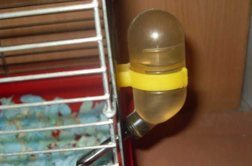 Важно! Следует учесть, что хомяк постоянно будет двигать плошку с водой, выплескивая ее содержимое и увлажняя подстилочный материал. Нужно исключить данную ситуацию — влажная теплая среда идеальна для развития болезнетворных организмов.