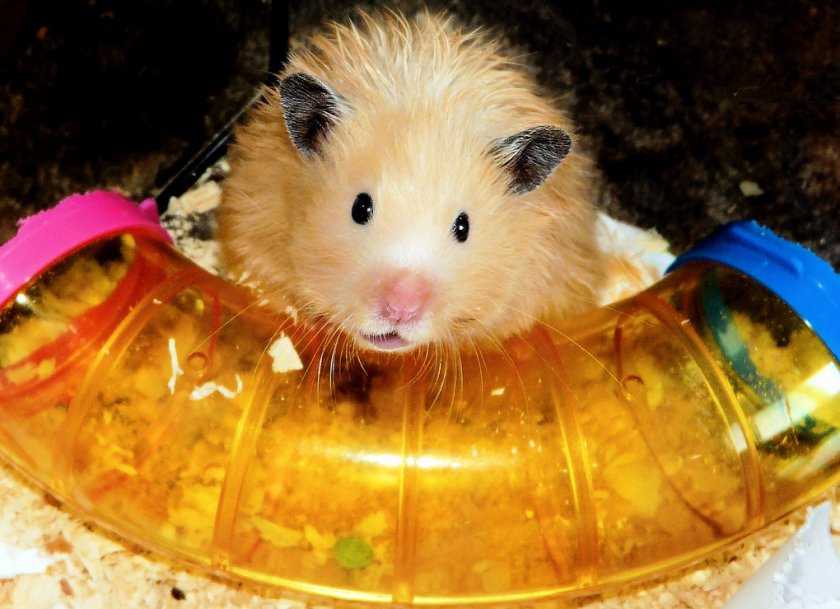 Жилище хомячка должно обустраиваться специальным колесом, которое будет выступать в роли гимнастического снаряда, а дно засыпается опилками, которые способны впитывать влагу, а также посторонние запахи.